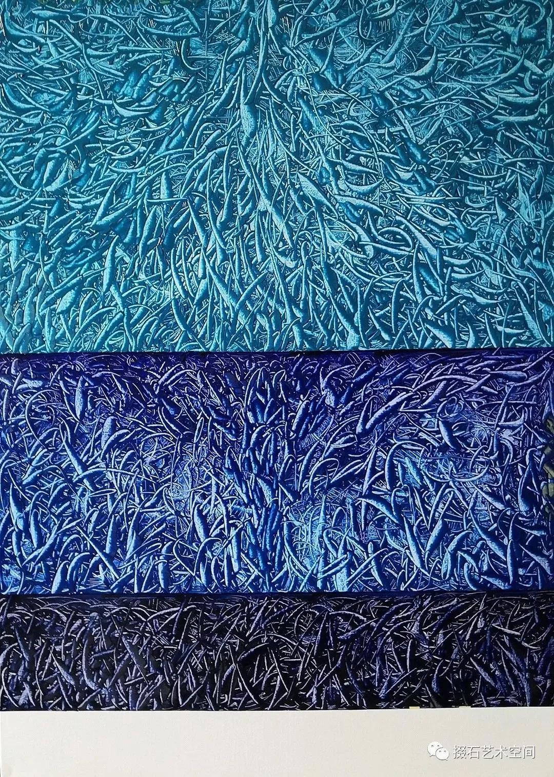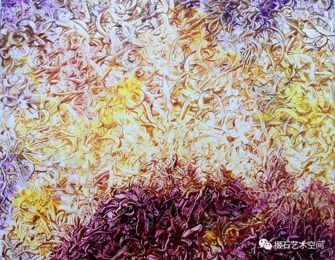 艺术家曾表示:“源于内心每一寸感性笔触与肌理,每一处色彩之间,如同诗歌的每一章节、段落与词汇们相互作用与关联,在理性的统筹下,那些有意识与无意识的抽象元素将让观者从视觉体验上引发互动,这是感性与理性的叛逆与禁锢之间的战斗,是高歌一曲充满力量的诗。