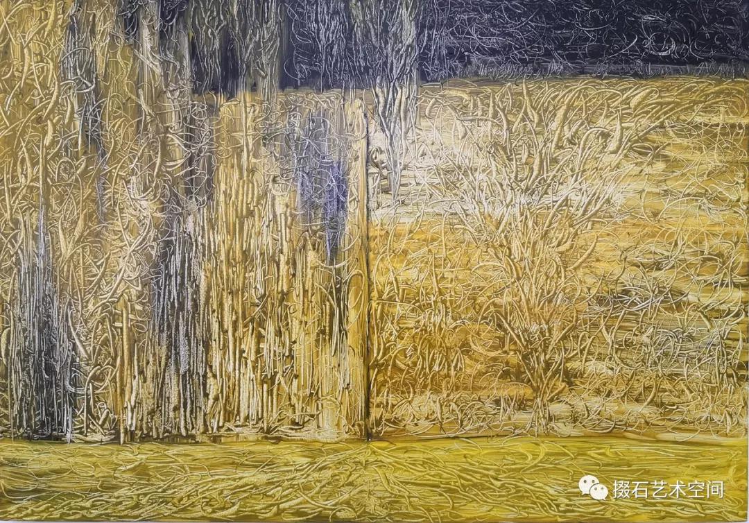 “今天的作品更多的注重与自身内在的直接关联,空间、时间及表现,画面趋向更简洁单纯。用自己的方式与技法置入自我空间,关注材料显现特性,它们挤压与释放,挤压与冲突共同构筑一个对生命生生不息、涅槃轮回,绵延、繁盛的状态。”黄凌云如是说。