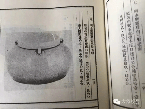 1935年为参加英国伦敦中国艺术国际展览会从当时的故宫博物院众中藏品中挑出十一件永乐瓷器,其中就包括翠青釉三系罐在内,足以说明永乐翠青釉瓷器的重要性和代表性了。但从黑白的图录照片,我们暂时难以判断这件带盖的三系罐是北京故宫的还是台北故宫的。