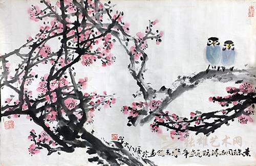 款识:春酣图 乙酉岁末于珠江南岸 方向