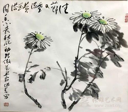 款识:佳节又重阳黄菊满园香 不畏秋风劲能傲万里霜 传义写