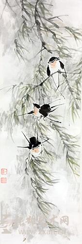 顾一尘 《柳燕图》22×68cm 1.3平尺 框 钤印:(朱)一尘