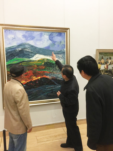 正如那顶红星闪闪的黑帽子,原华伍先生的艺术创作总能释放出令人愉悦的强大的生命力。他始终在追寻着大自然的圣洁与灵动,追求着艺术创作的纯粹与激情。他曾到寸草不生的甘肃三危山,看到红褐色的山石泥土,犹如烈火烧焦状,充满了莫名的恐惧与兴奋,回来后带着激情创作了十几张作品。他也曾到西部的旷野山脉,看到高山上非常宁静、干净、透彻的山泉水,以为是眼睛犯了错,激动得颤抖,创作了最新系列作品《蓝系列》。他的每幅艺术创作释放的是发自心底的震撼。这种震撼来自对大自然的敬畏、对艺术信仰的诚挚,这份神圣与炽热同样震撼着读者的眼睛与灵魂。